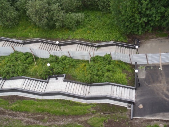 ЖЖ-юзер underjollyroger заметил, что на главной мурманской лестнице, соединяющей улицы Воровского и Буркова, ремонт подошел к концу, однако лестница еще закрыта:
