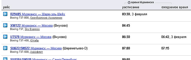 и даже узнать про пока неподтвержденный рейс оренбургских авиалиний из Мурманска в Шарик: