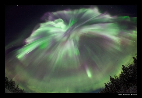 Сегодня ночью было мощное северное сияние — несмотря на засветку, оно было заметно даже из городов. А вот таким его увидел Валентин Жиганов из Апатитов:
