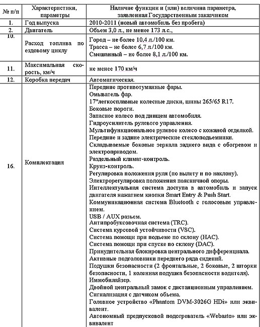 УВД Мурманской области за счет федерального бюджета закупает «Toyota Land Cruiser 150» или эквивалент: