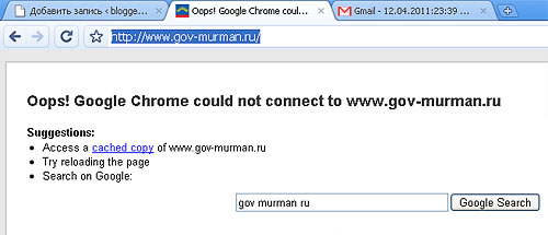 Под вечер дня космонавтики отвалился сервер областного правительства gov-murman.ru, всем пох уже часа четыре: