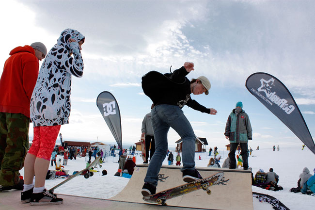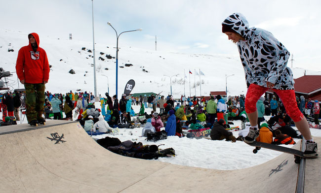 Под Кировском открылся сноубордический лагерь DC.Kirovsk.Lab 2011. Днем участники катают, вечером отрываются в кировском боулинг-клубе.