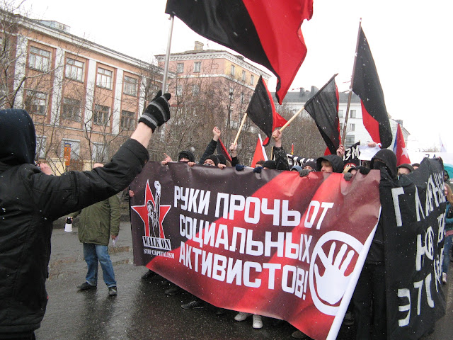 Группка анархистов и эээ, секс-меньшинств? Кстати, на конец мая зреет митинг против пропаганды гомосексуализма.
