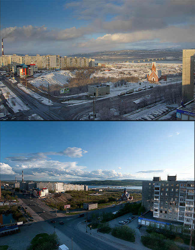 Вверху: семь утра второго мая, внизу — вчерашние десять вечера: