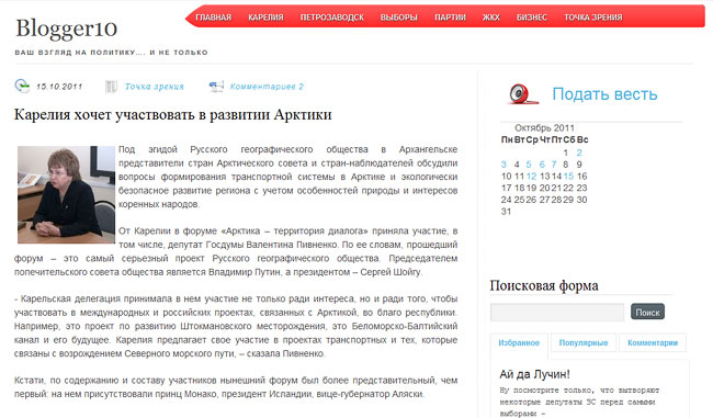 Внезапно! Прут идеи на ходу – незамысловатые карельские соседи, по всей видимости, представители красной колонны, зарегистрировали blogger10.ru. И не только зарегили, но и откровенно гря, попёрли всё — и рубрики, и оформление и т.д.