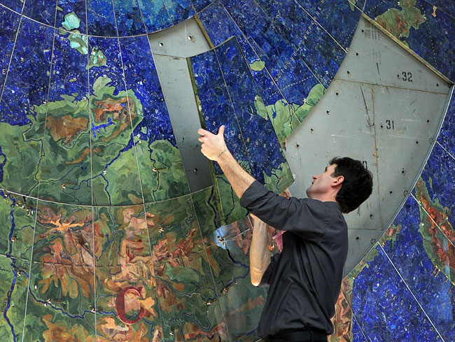 Санкт-Петербург. Реставраторы восстанавливают экспонат музея Всероссийского научно-исследовательского геологического института — мозаичное панно из драгоценных и полудрагоценных камней «Индустрия социализма», представляющее собой карту Советского Союза