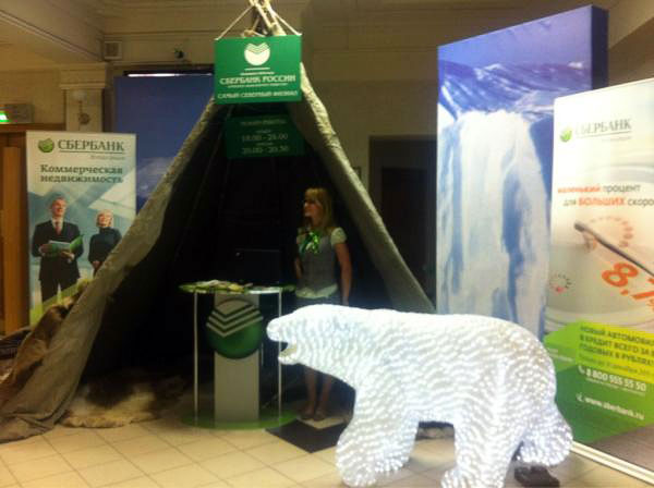 Макет мишки одолжило Мурманское морской пароходство, и практически одновременно с карточкой увидел запись с Чукотки, как белый медведь нападает на человека: