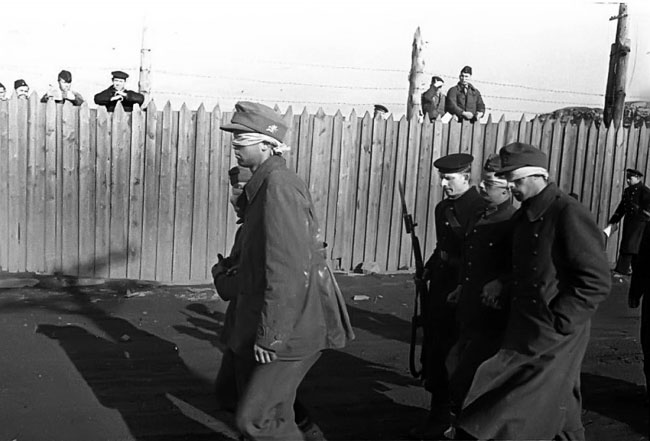 //Моряки Северного флота конвоируют пленных немецких горных егерей. Значит, Мурманск или область