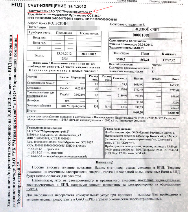 Проверила по http://egrul.nalog.ru/ по ИНН — и правда, ООО «УК «Мурманремстрой 2», в квитанции написано ЗАО, но эта же опечатка идет под расчетами с указанием телефонов, адреса и регистрационных данных, а на обороте адрес, телефон и график работы указан уже ООО «УК «Мурманремстрой 2″… пока не платим — хотим разобраться. К тому же вылез еще один проживающий — у нас, конечно, родился малыш, но почему-то предыдущие полгода его не учитывали в квитанции, а теперь начали.