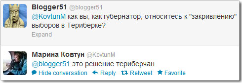 Там жителей никто не спрашивал, в Варзуге тоже вон якобы выбрали бывшего губернатора Ростовской области Чуба. Так что очередная ковтунская ложь. Седня она тоже выдала — Есть случаи, когда государственные и муниципальные служащие рассматривают свою работу как доходное место. Необходимо формировать непримиримое отношение к такому положению дел, — сказала Марина Ковтун.