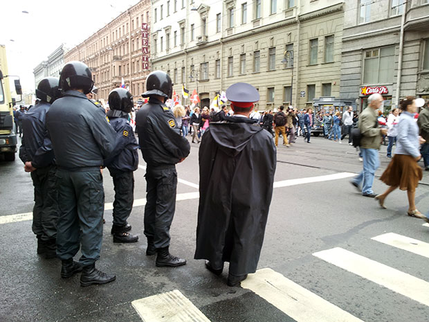 В остальном же осталось впечатление какой-то растерянности: участников шествия было поменьше, чем в прошлый раз, глотавший половину кричалок мегафон, да и лозунги приевшиеся — «Долой Едро», «Россия без Путина» и их склонения. Отдельные вызывали аплодисменты и вот тогда возникало ощущение какой-то движухи. А так — плелись в окружении «космонавтов»