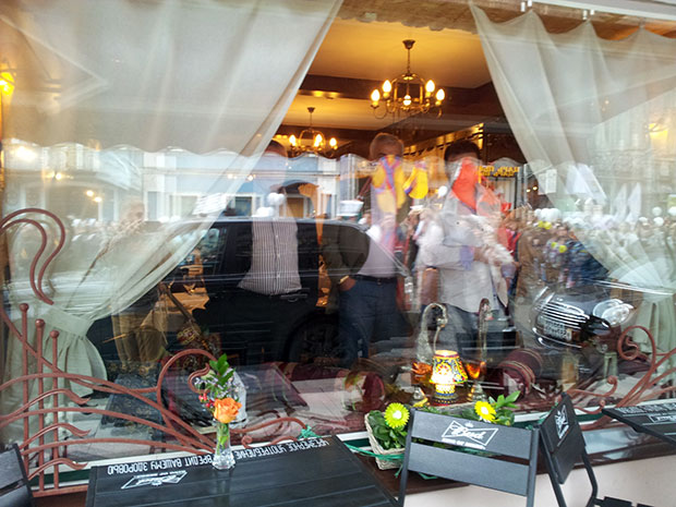 Разглядывая случайных прохожих и посетителей кафешенек, поймал себя на мысли, что ровно с таким же ленивым интересом люди бы смотрели бы на парад ретро-автомобилей, а появись на проспекте стадо слонов — уж им бы внимания уделили поболее.