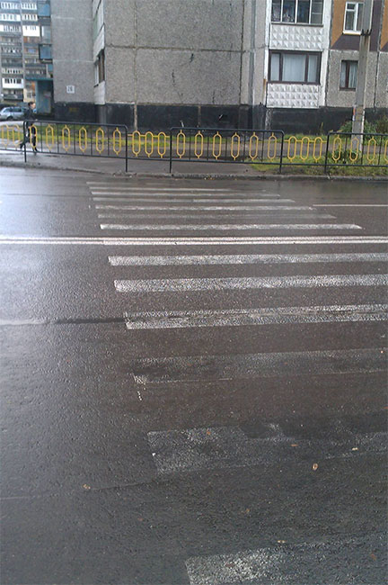А чо? К зебрам прензии есть? А к заборчикам? Правильно — всё сделано добротно! Просто главный по зебрам не знаком с главным по заборчикам, их обоих Сысоев знает, но сказать стесняется…