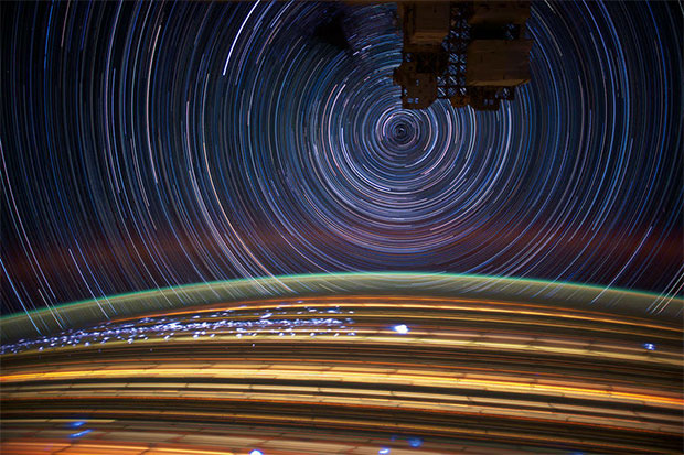 Подборка какрточек, снятых с борта международной космической станции на длинной выдержке:
