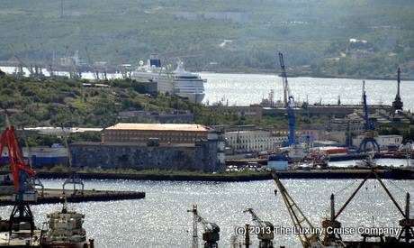 Я больше смотрю на место куда пристают эти лайнеры. Как-то это место напоминает мне деревню в Рязанской области куда я приезжаю летом :) Заросшая трава, облупленные краска и ржавчина на кранах. Вот сколько срубили бабок интересно с туристов. А не ужели нет денег чтобы просто купить краску и покрасить рядом стоящие заборы, кран. Травку сделать аккуратную. Надпись на разных языках «Добро пожаловать !» Наши власти все ждут Штокман и прочие конструкции, а ведь кто-то пробил что лайнеры в наш порт пошли. Но нет середины. Нет красоты приема. Грустно. Но не удивительно для Раши.