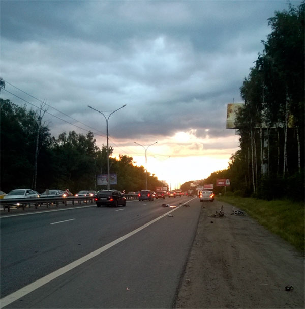 В Домодедовском районе Подмосковья сбили спортсмена-велосипедиста ехавшего по обочине, водитель обгоняя справа по обочине со скоростью 130 км/я находился в состоянии опьянения.