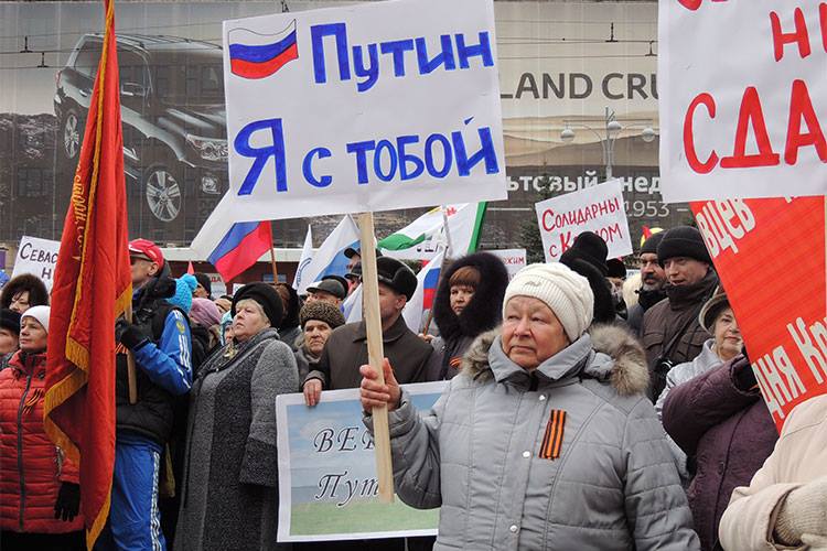 В стране экономический обвал, зато флагов, транспарантов и ленточек, изготовленных за счет бюджета — завались)) Думаю, еще оплата автобусов, чьих-то рабочих смен. Что, интересно, эти люди совсем скоро начнут только крупу в магазинах покупать и вот тогда шустро выйдут повыть о своих несчастьях, правда, для них это праздником уже не будет)) путин позаботится))