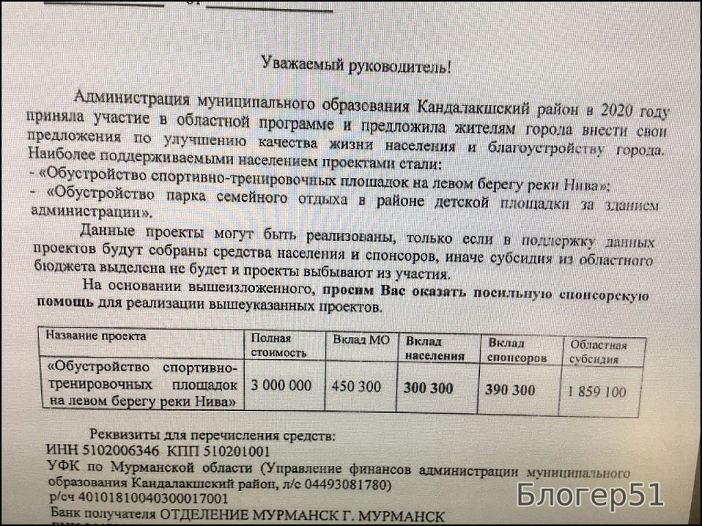 Эволюция бюрократии в Кандалакшском районе. Если в ходе эволюции животный мир отращивает разные там когти, клыки и прочие панцири, то кандалакшская бюрократия обрела навык попрошайничества спонсорской помощи.