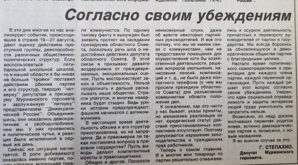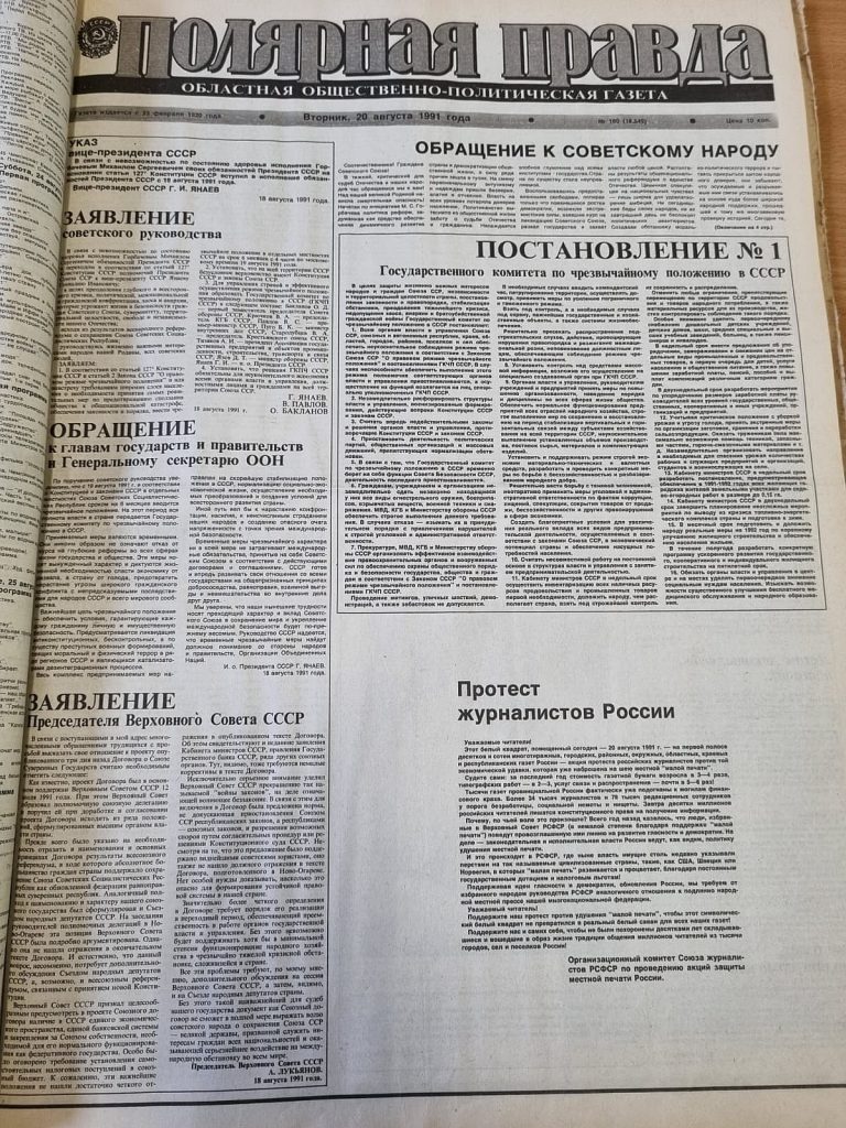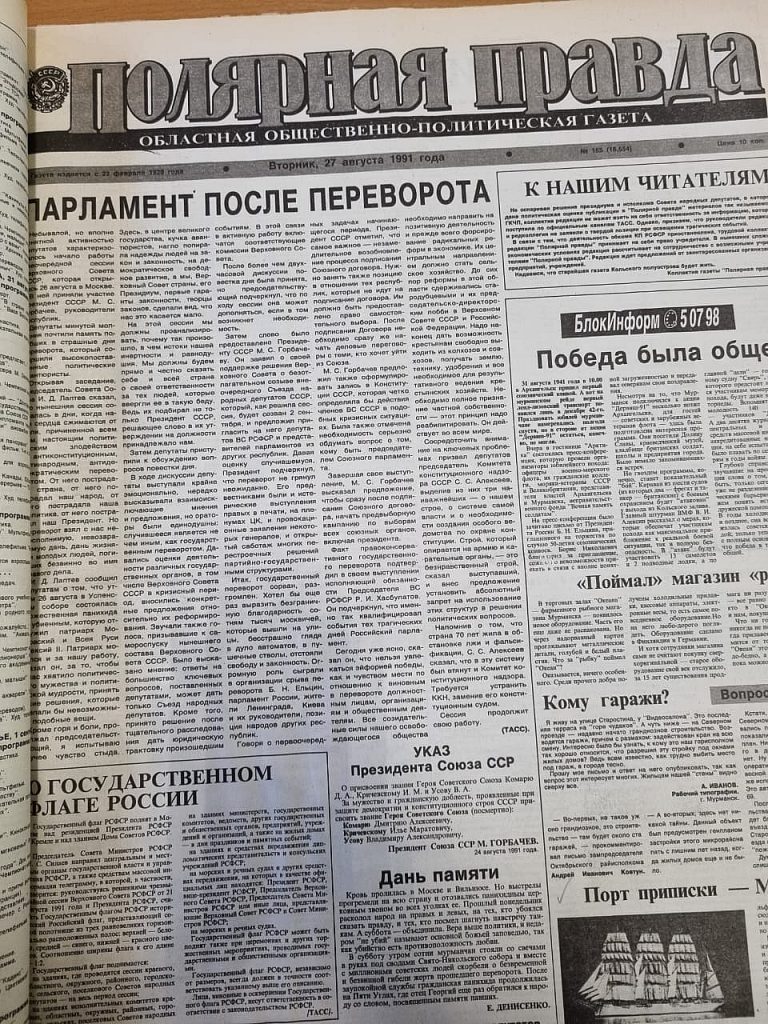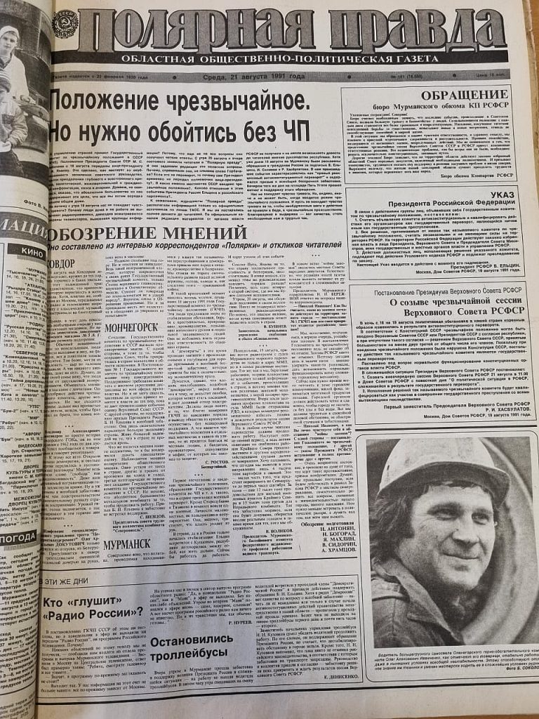 Что печаталось в «полярной правде» в дни августовского путча тридцать лет назад