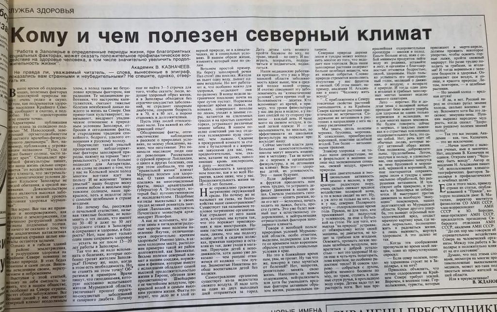 Вот гражданин Жданов рассуждает о пользе северного климата для здоровья. Для ощущения пользы предлагает читателям повышать качество питания и больше двигаться: