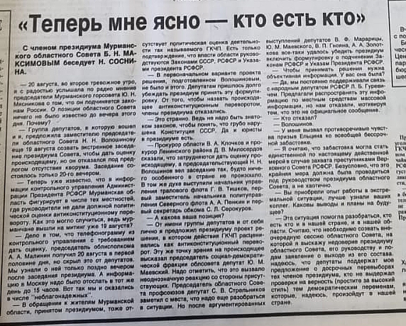 Главная газета области, всё понятно. Но картина будет «маслом», если опубликовать, кто из ОблДумы 30 лет назад кем был и на каких постах… Точно знаю, что БПО «Севрыба» поддержало ГКЧП, КСФ, вроде, тоже…
