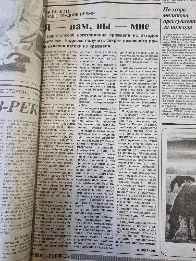 А вот и реальность: гражданин Жданов делится с читателями секретами извлечения крахмала из картофельных очистков: