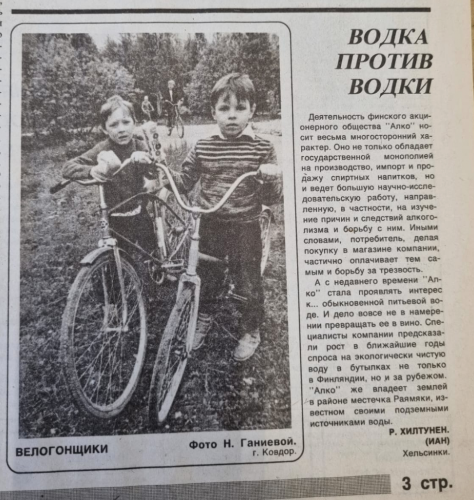 А вот немыслимая по сегодняшним меркам пара — реклама финской водки соседствует с парой подростков из Ковдора
