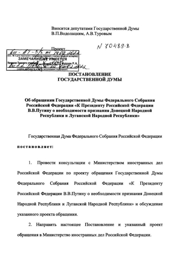думаю, очередная «многоходовочка»: коммуняки свой проект ещё 19.января заслали — и тишина, а едросы вчера — и сегодня же госдура уже проголосовала за ОБА (причем, что интересно, за проект КПРФ 351 голос, а за проект ЕР — 310). А постановление ГД всё-таки это уже официоз — и все — и хохлы, и Европа — напряглись, ессно. И тут плешак такой: да успокойтесь, пацаны, минские соглашения ещё не исчерпаны… ПОКА не исчерпаны…