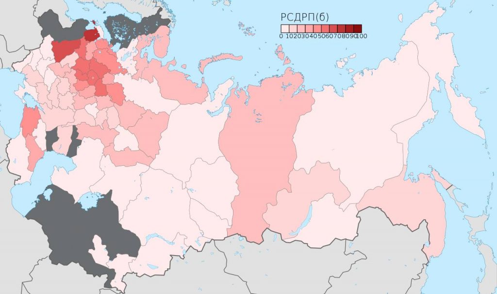 Теперь про русский мир. Например, в 1918 году на выборах в Учредительное собрание большевики набрали более 70% именно в Лифляндской губернии. Это был самый высокий показатель у большевиков во всей империи. Всего же большевики по стране набрали 22% vs 70% в Прибалтике. Вот карта с итогами голосования в Учредительное собрание в 1918 г. Тут конкретно результаты большевиков по империи,: чем краснее — тем более процент.