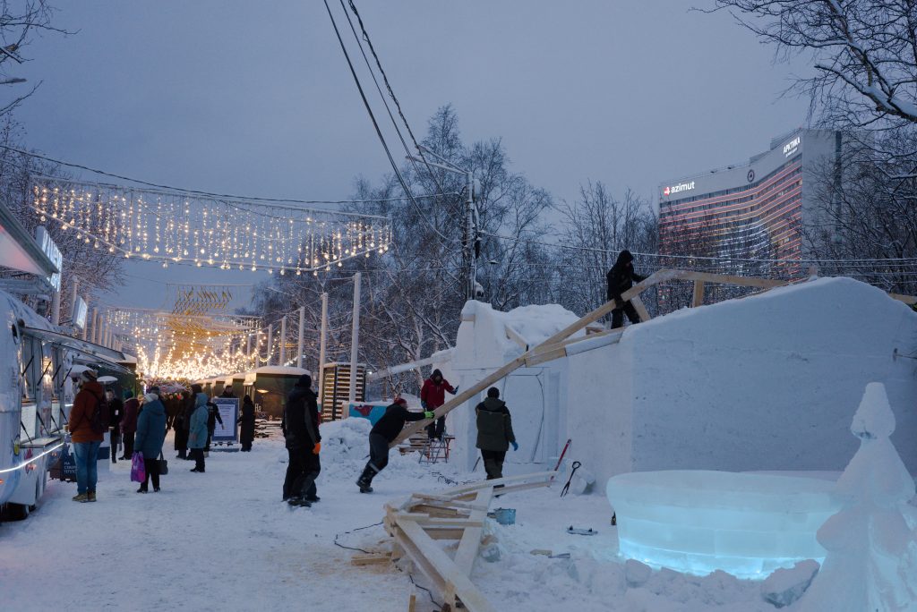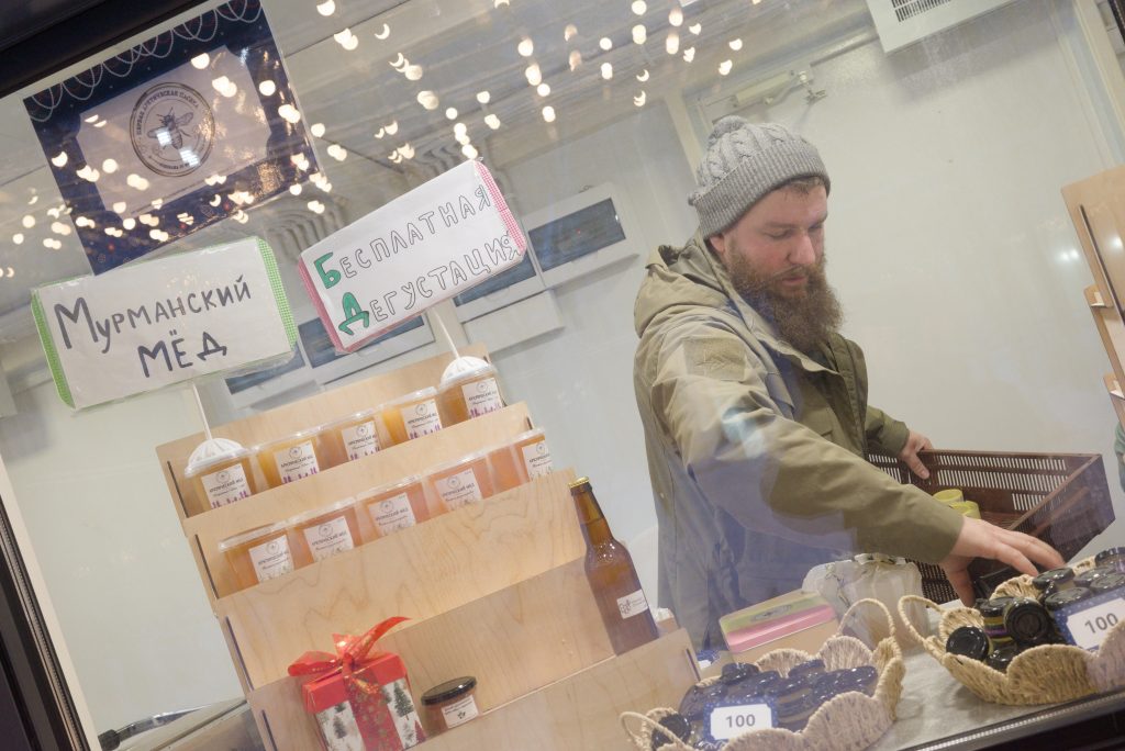 Прилагаю несколько фотографий с новогодней ярмарки в центре Мурманска.