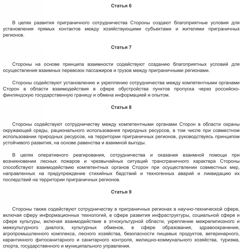 Россия заявила Финляндии о прекращении договора о приграничном сотрудничестве. А вот собственно пункты этого договора: